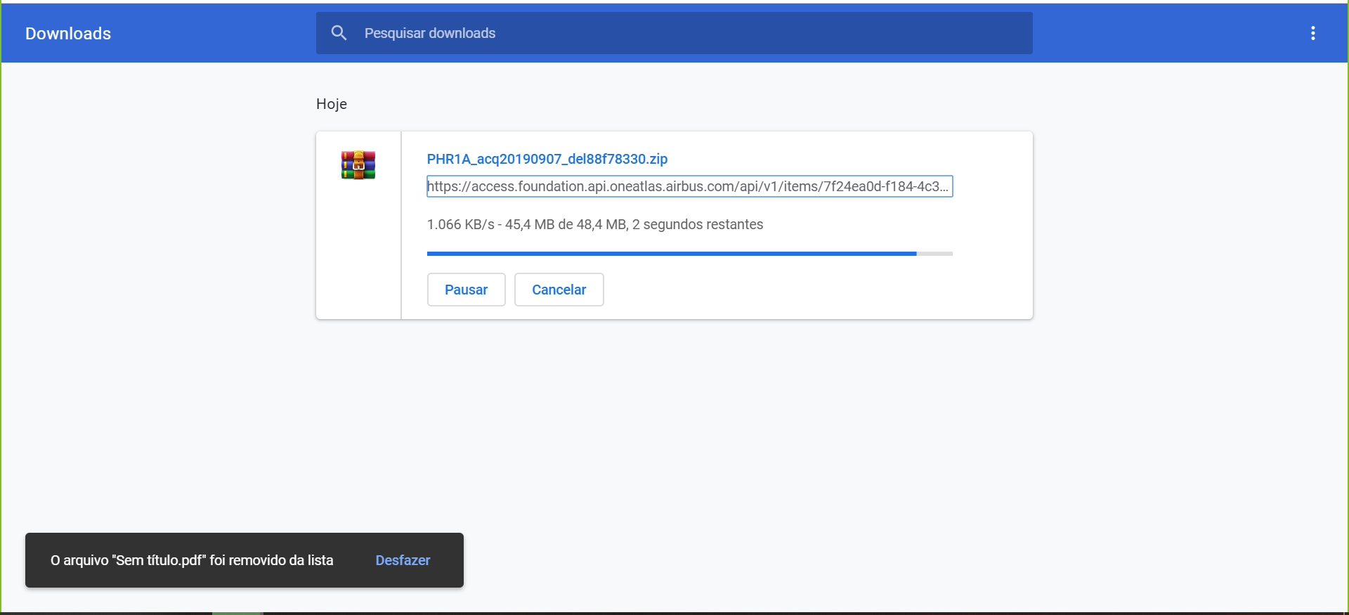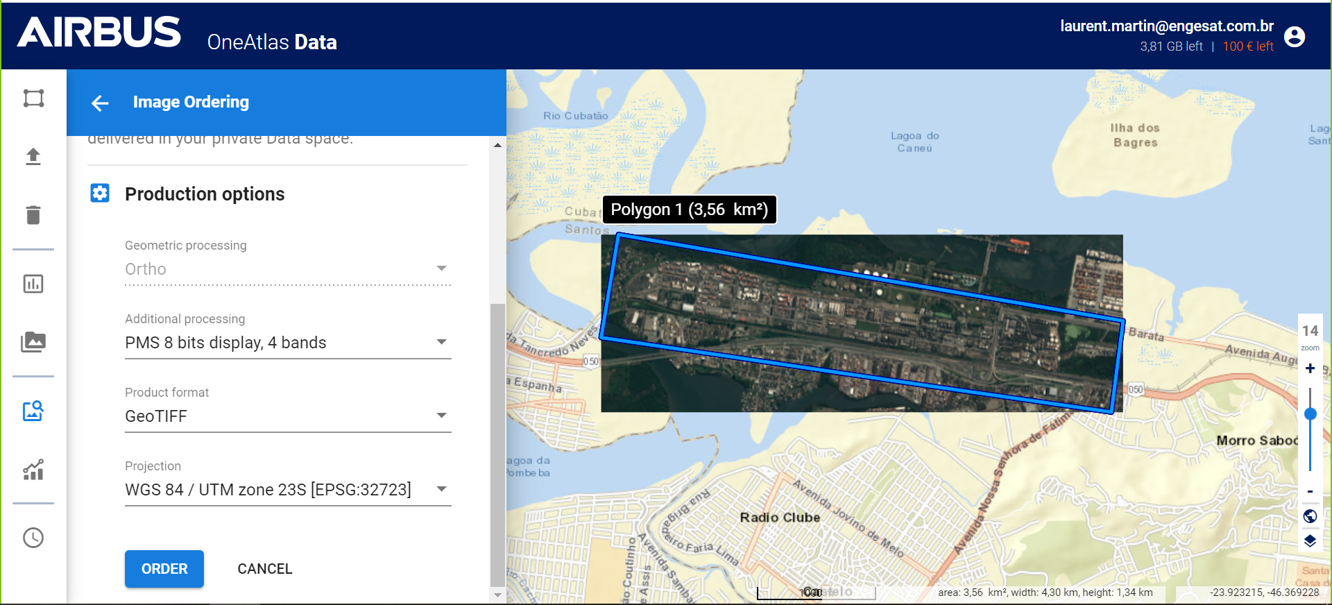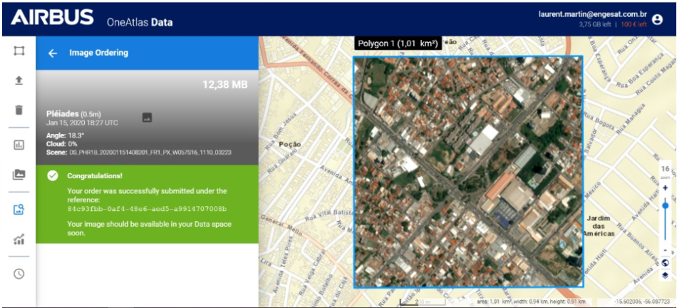 Pedido de 1 Km2 de imagem Pleiades de Cuiabá realizado pelo Living Library: