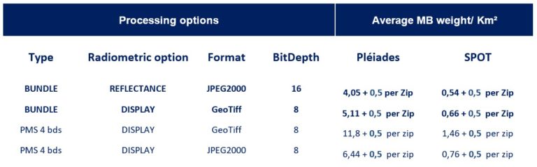 ATENÇÃO: Estas imagens entregues pelo Living library não servem para ortoretificação de precisão usando pontos de controle e MDE pois já vem ortoretificadas com parâmetros orbitais e sem RPCs. Portanto, se você precisa das imagen com RPCs, se aplicam as áreas mínimas do método de comercialização habitual (25 Km2 para o Pleiades e 100 Km2 para o SPOT).
