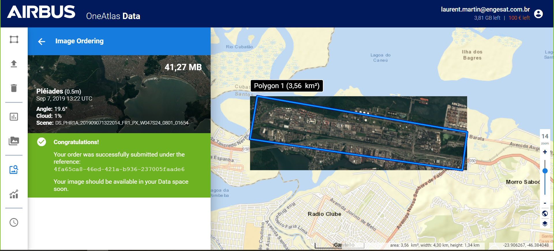 Somos Distribuidor Autorizado da AIRBUS e a imagem especialmente recortada nos limites de sua área de interesse no sistema OneAtlas / Living Library é fornecida com os dados brutos e os a metadados originais da imagem gerada na AIRBUS para servir exclusivamente seu projeto, comprovando a origem, a resolução, data e limite da área recortada. Tal procedimento respeita plenamente as normas de licenciamento dos dados conferidos pela AIRBUS a ENGESAT em virtude de Contrato de Distribuição vigente.
