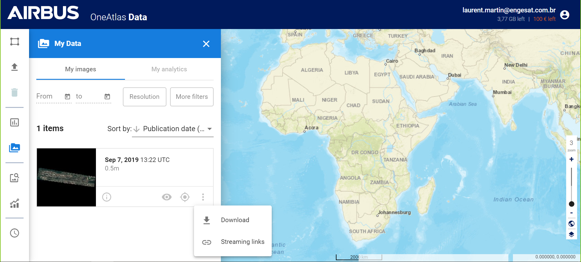 Os preços cobrados são diretamente ligados ao volume de dados consumido, ou seja o tamanho da área de interesse em Km2 e o volume de dados que é objeto do streaming e/ou do download.