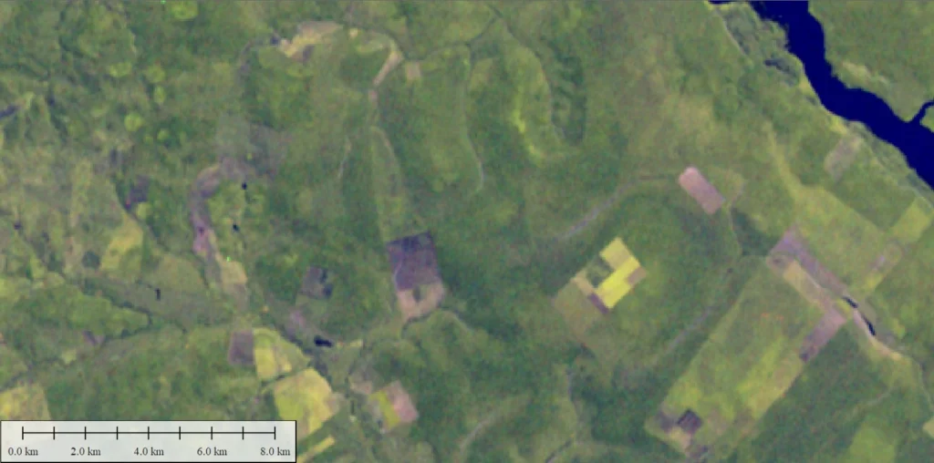 Variável conforme o satélite e a data da imagem.