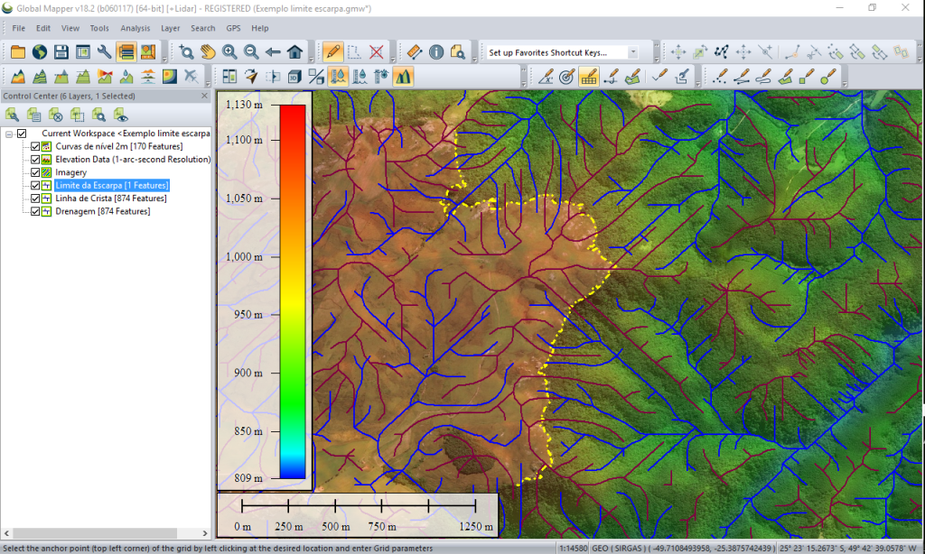 Comercialmente, o cliente interessado deve indicar com clareza as linhas de divisas a serem levantadas, incluindo vértices virtuais. Uma análise prévia com imagens de acervo permitirá avaliar a viabilidade do levantamento e a disponibilidade de pontos de controle em áreas acessíveis próximas. Geralmente, utilizamos um corredor de 3 km de largura total ao longo da divisa de interesse.
