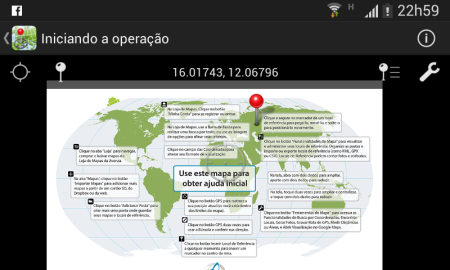 O trabalho começa com o carregamento de uma imagem no sistema, ou seja, no seu terminal móvel. Para testar, carregue uma imagem que cubra todo o Brasil, como o mapa de ferrovias da Valec, para ter material de trabalho, independentemente do local onde você esteja no Brasil ou na maior parte da América do Sul.