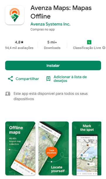 A licença do Avenza Maps é gratuita SOMENTE para uso particular e não comercial, para recreação e para uso por exemplo para navegação e orientação pessoal. A licença gratuita para uso particular e não comercial não dá direito a suporte técnico.
