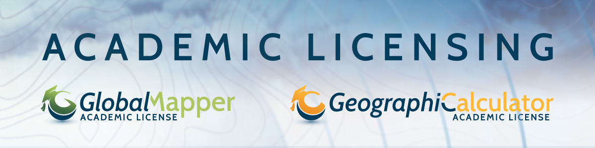 O programa de Licenças Acadêmicas Gratuitas disponibiliza as licenças dos aplicativos Global Mapper, Global Mapper Pro do Global Mapper e o Geographic Calculator.
